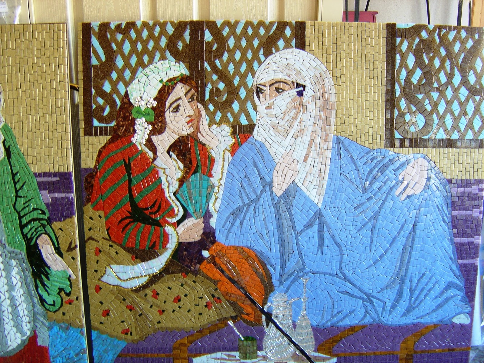 Bugün perşembe, ayın her perşembesi Sultanahmet Caferağa Medresesi Türk Kültürüne Hizmet Vakfı'nda mozaik dersleri veriyorum. Bu sene 10.ncu yılım. Çok keyifli bir atmosfer. Çevremdeki insanlar bile o kadar alışmışlar ki benim her perşembe Sultanahmet'e gidişimi, bugün emlakcım aradı ve "kusura bakma Aysel Hanım, derste olduğunuzu biliyorum" diye söze başladı. Çok güzel, hoşuma gitti.