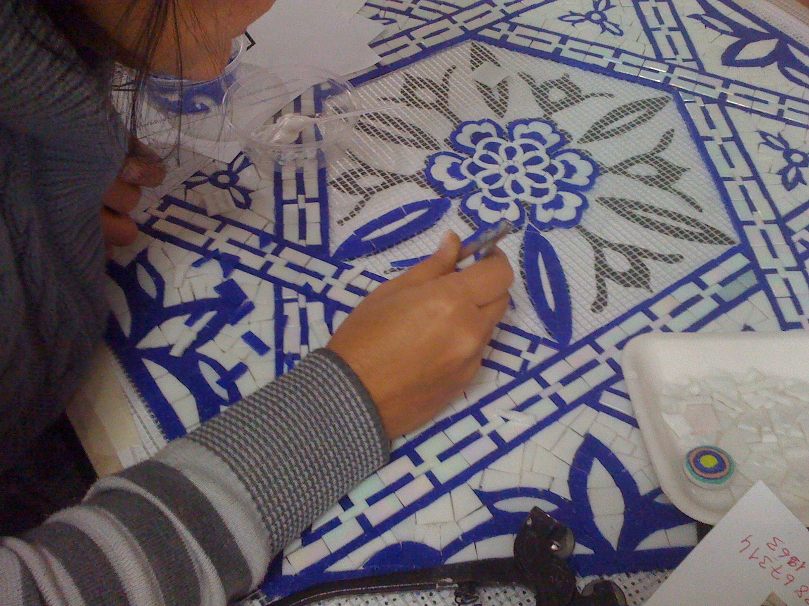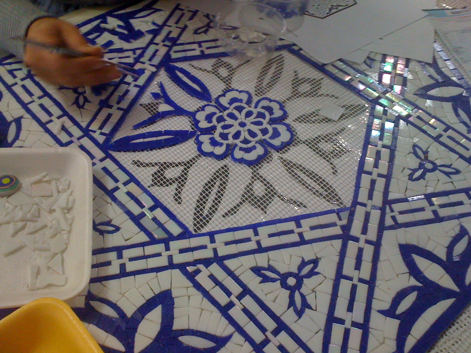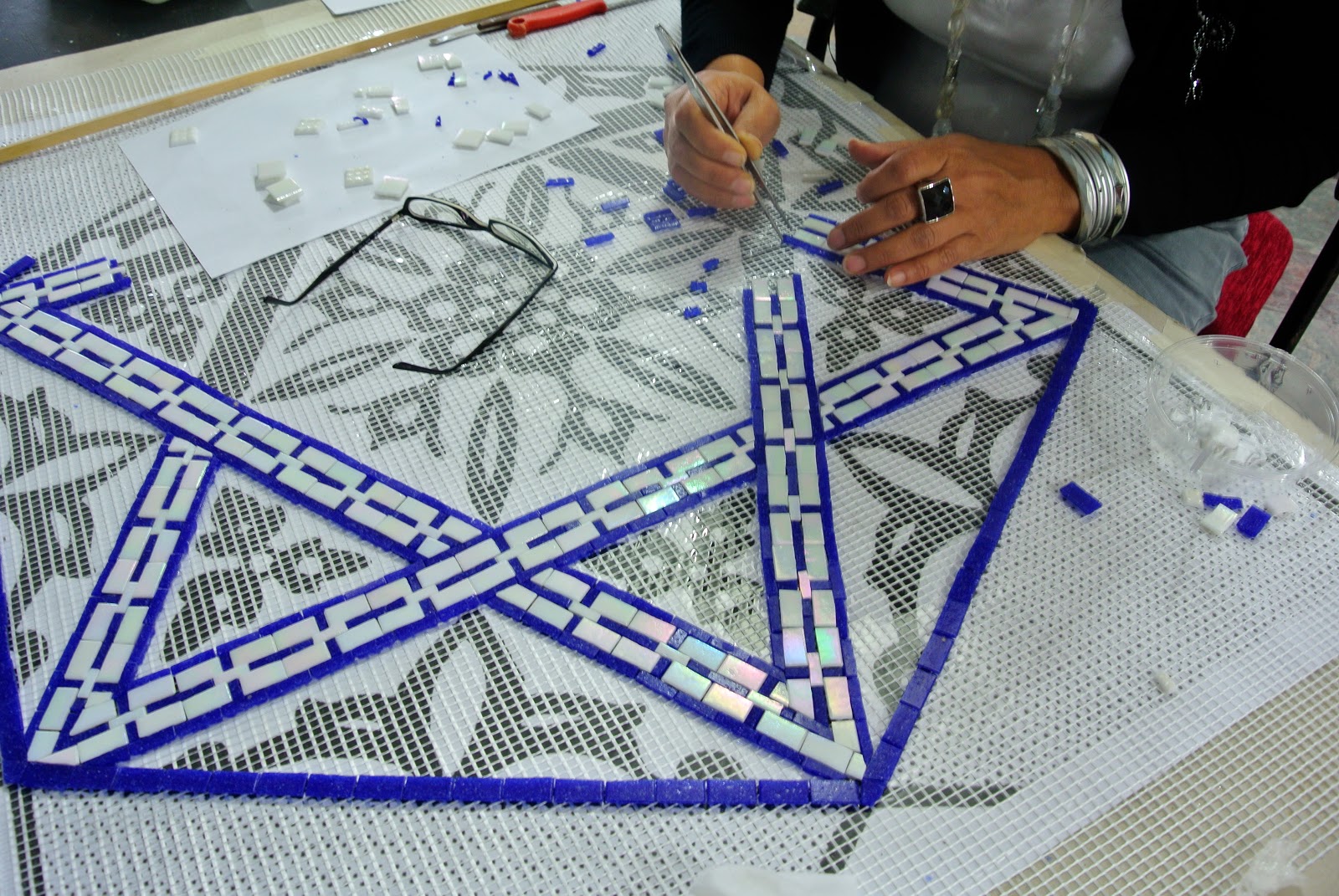 Çini desenlerinden Davut Yıldızı, cam mozaik yapım çalışma detayları.