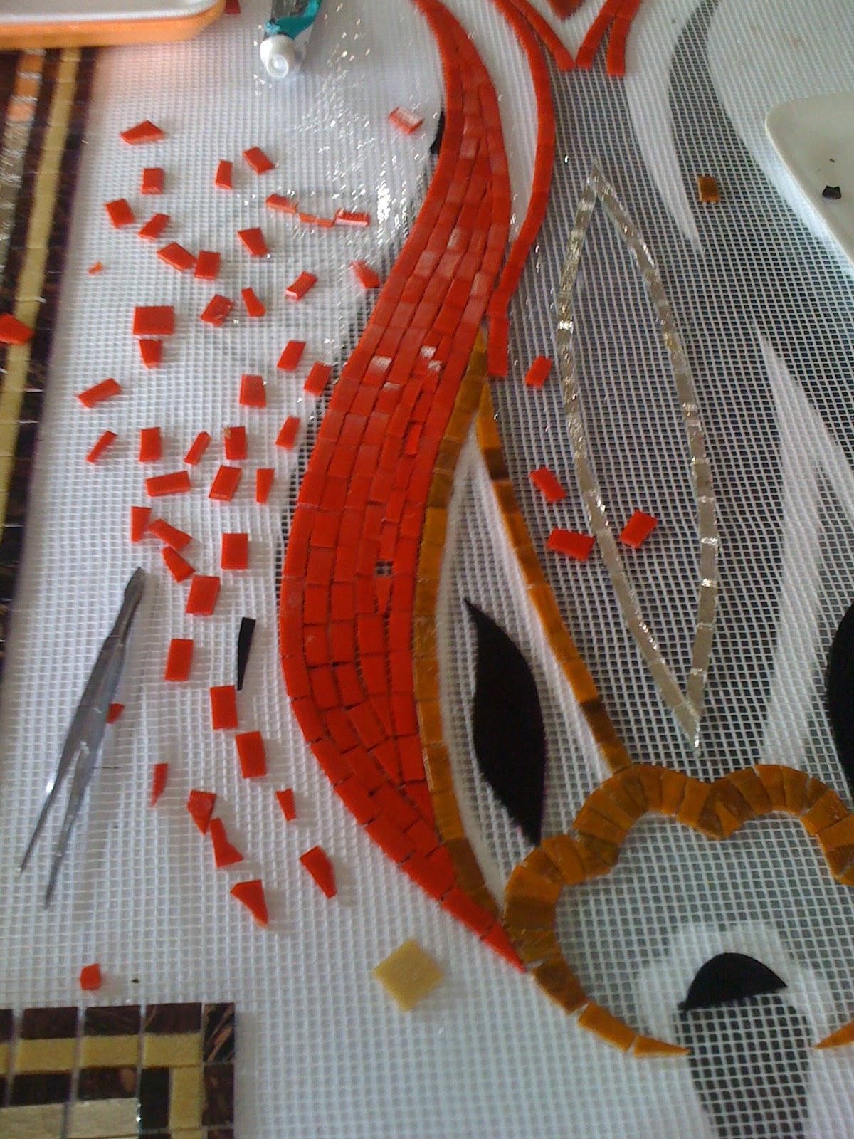 Lalemiz epey ilerledi. Bu arada Yeni arkadaşımız ilk kez mozaikle tanıştı ve güzel bir ayna çerçevesi yaptı. Başlangıç olarak hiç fena değil.