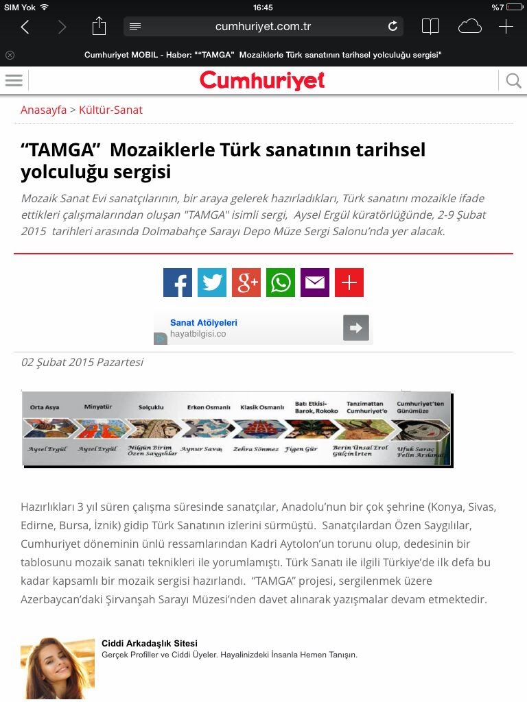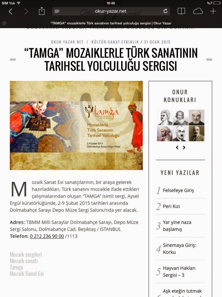 Basında "Tamga" Mozaik sergisi
